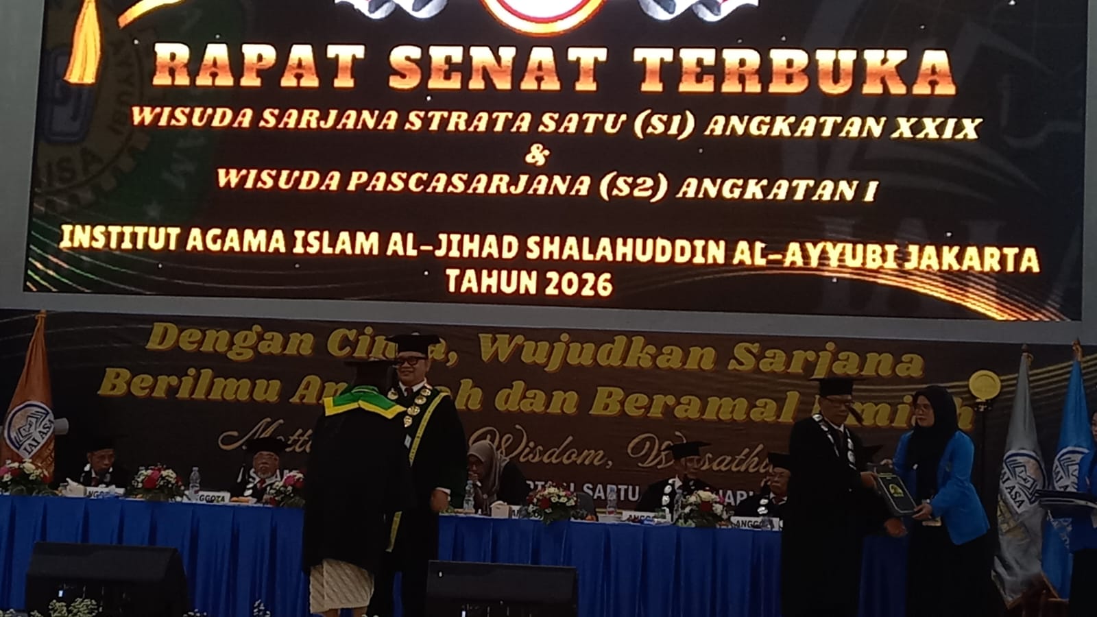 JAKARTA – Institut Agama Islam Shalahuddin Al-Ayyubi (IAIASA) sukses menyelenggarakan Rapat Senat Terbuka dalam rangka Wisuda Sarjana Strata Satu (S1) ke-29 dan Strata Dua (S2) ke-1 yang bertempat di Aula Serbaguna Asrama Haji Pondok Gede, Jakarta, pada Sabtu, 24 Januari 2026. Acara yang berlangsung khidmat ini menandai tonggak sejarah baru bagi IAIASA dengan meluluskan angkatan pertama program Pascasarjana, dengan total wisudawan mencapai 477 orang yang terdiri dari 429 lulusan S1 dan 48 lulusan S2.